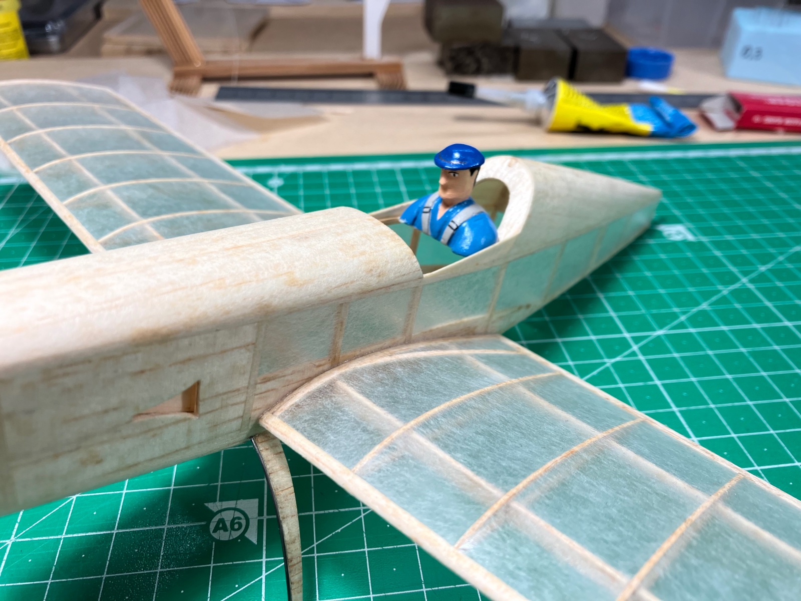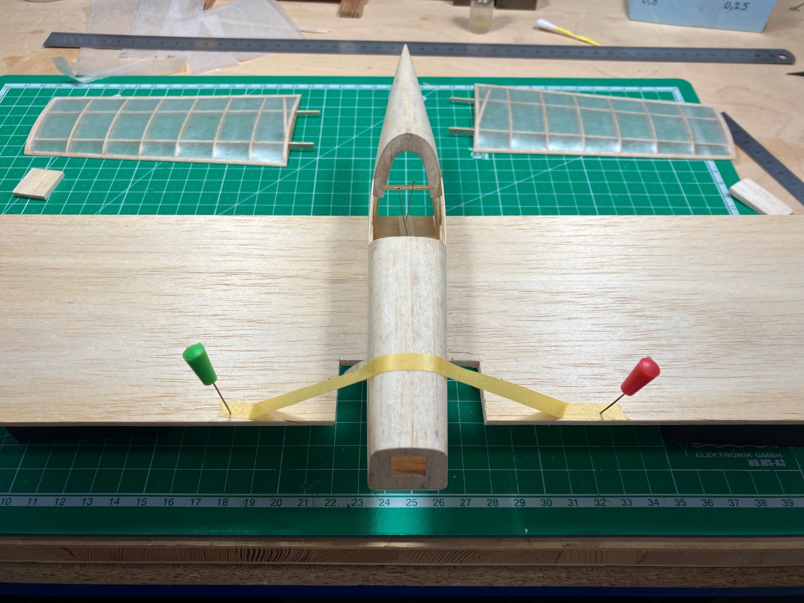 Ještě mne napadá udelat proužky po plastikáčsku: vymaskovat je a stříknout surfacerem. Po sejmutí masek budou proužky mikroskopicky vystouplé. Poté aplikovat nástřik barvou. Rozbije to povrch. Váhově to vyjde lehčí než lepit prolakovane proužky papíru.