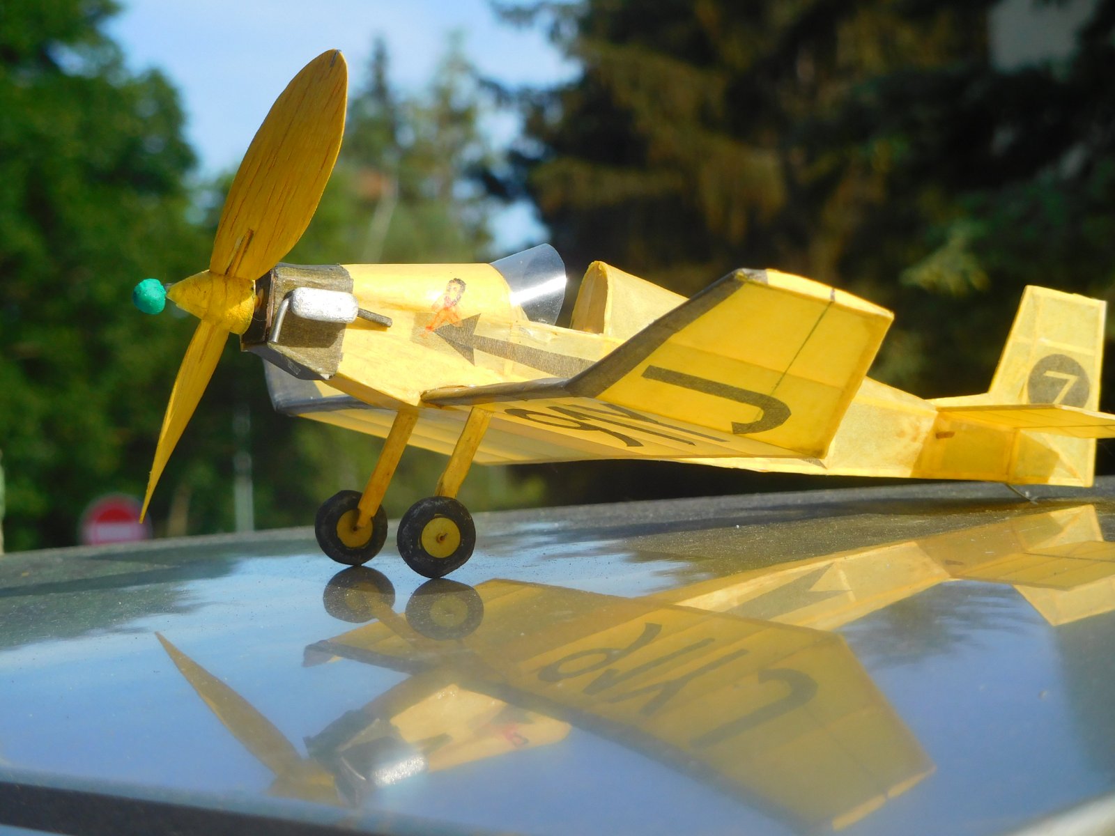 Včera odpoledne pršelo,ten déšť trval sotva půl hodiny, pak svítilo slunce a bylo úplné bezvětří. Takže jsem vzal krabici s pěti maličkými halovými minimaketami a zašel na plácek mezi paneláky, parčík a dálniční přivaděč, Ano, takové počasí je vzácné a také jsem je patřičně využil.. Postupně jsem si s každým modelem udělal několik pěkných letů, žádný neskončil na stromě ani nenarazil do paneláků, ale vždy v kruzích stoupal di výšky 5 - 10 metrů. pak pomalu v kruzích o průměru 15m klesal a přistál na trávě. Když jmen již modely balil do krabice, tak za mnou přišel nějaký africký student a ptal se čím ty modely řídím- Tak jsem mu řelkl, že ničím, že je mám tak již na zemi seřízené : Thereare not any Radio control. They are rubber powered scale models, for indoor flying only. Because it is the fantastic calm evening, they can fly outdoor. Doufám, že mně rozuměl, kdysi jsem byl schopný i vést v angličtině obchodní jednání s Kanaďany, ale to je již dávno chybí praxe a člověk zapomíná.