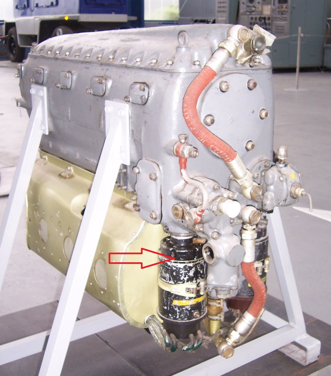 Ostatně, umístění olejové nádrže je logické - na druhé (pravé) straně motoru jsou výfuky - zdroj tepla a olej slouží nejen k mazání, ale i k chlazení.