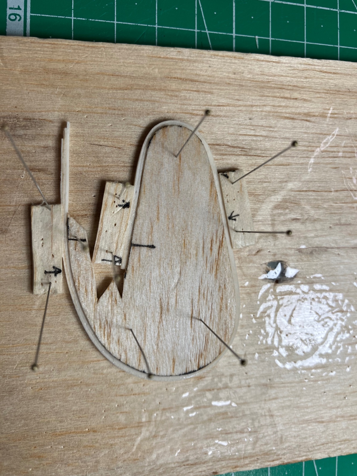 Mohu li poradit, pak tam, kde jsou malé poloměry a balza se ráda láme, tak zásadně používám několik tenkých pásků 0,5 -1mm z pevnější balzy. Šablonu ať z balzy, nebo lepenky potřu voskem jako separátorem, ty pásky na lamelování máčím v horké vodě a pak lepím herkulesem. Takto se to neláme, snadno sundává ze šablony, je to lehké a pevné.