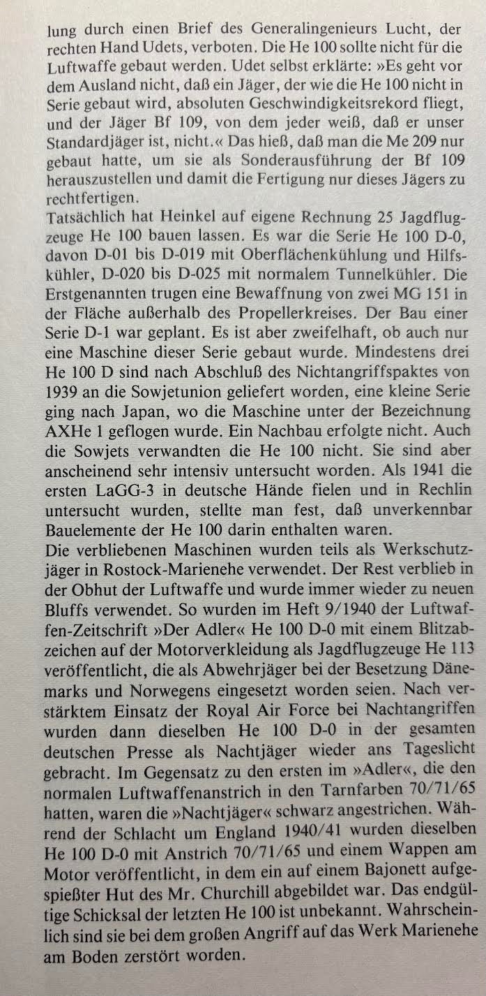 No a zmínka o kanónu, který měl u He-100 střílet osou vrtule, je v mnoha dalších pramenech vylučována, kvůli systému chlazení.