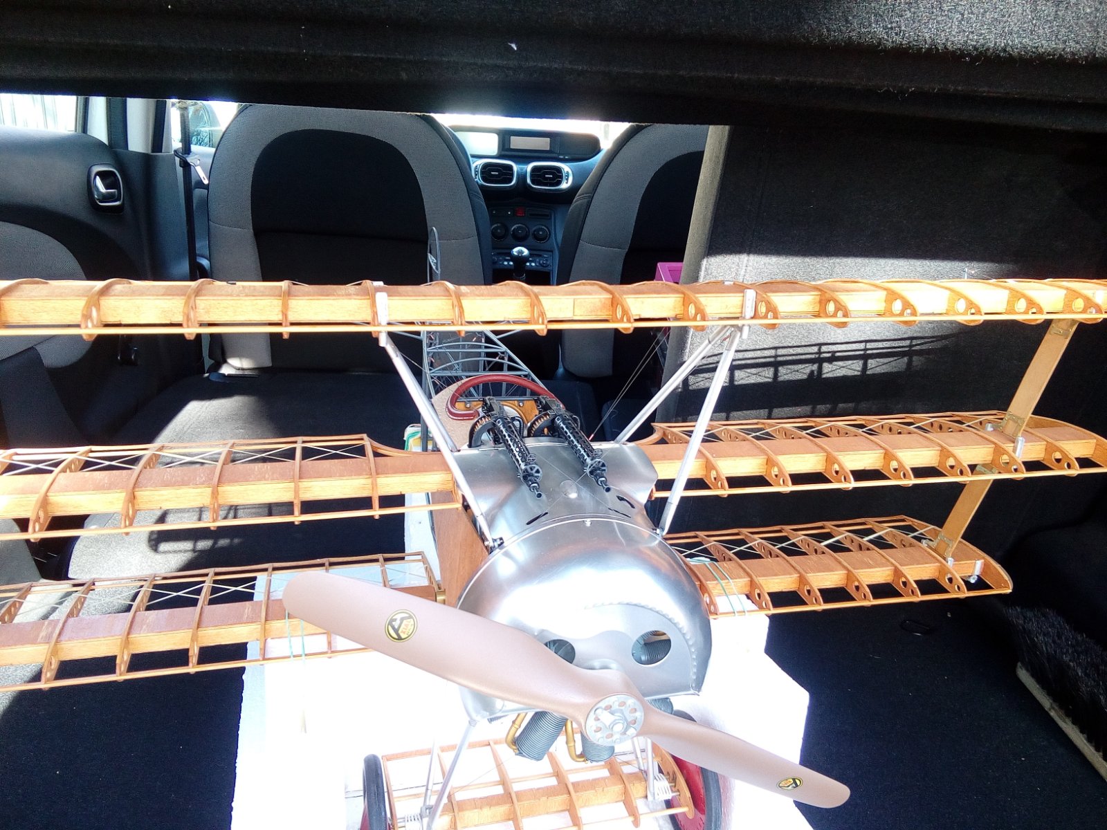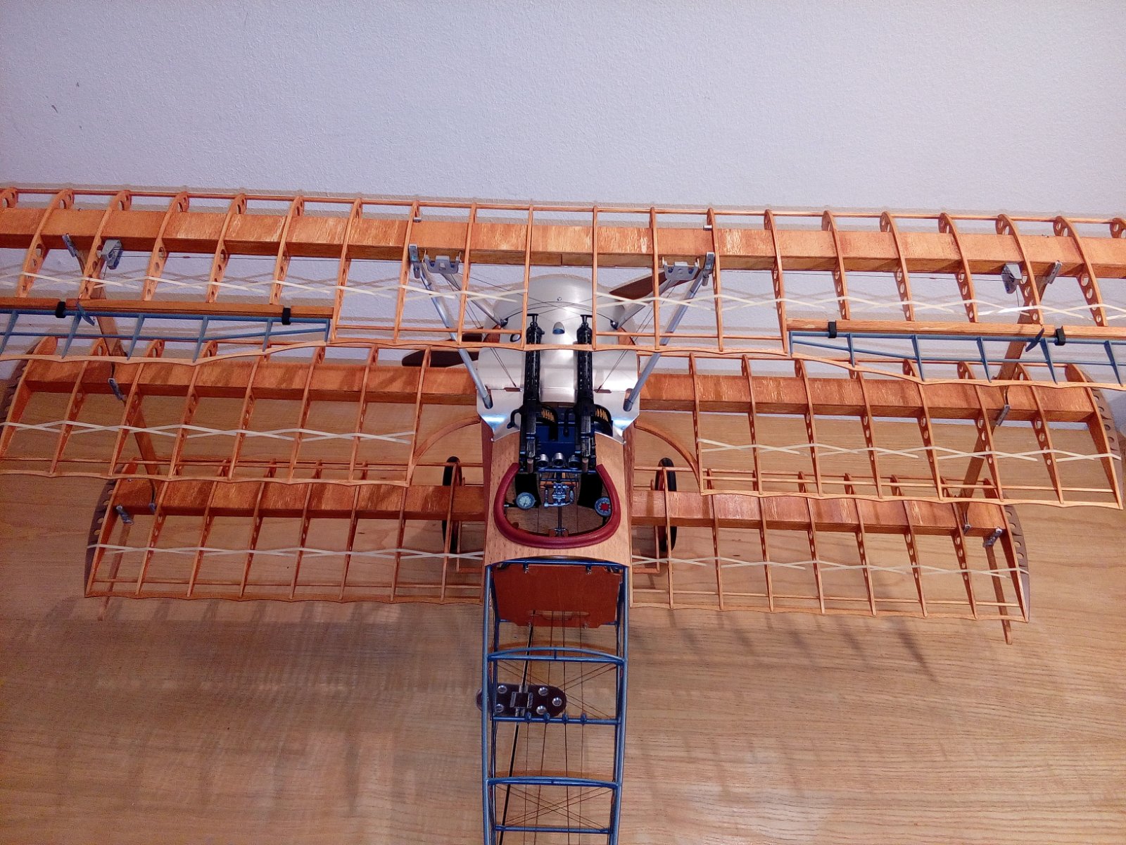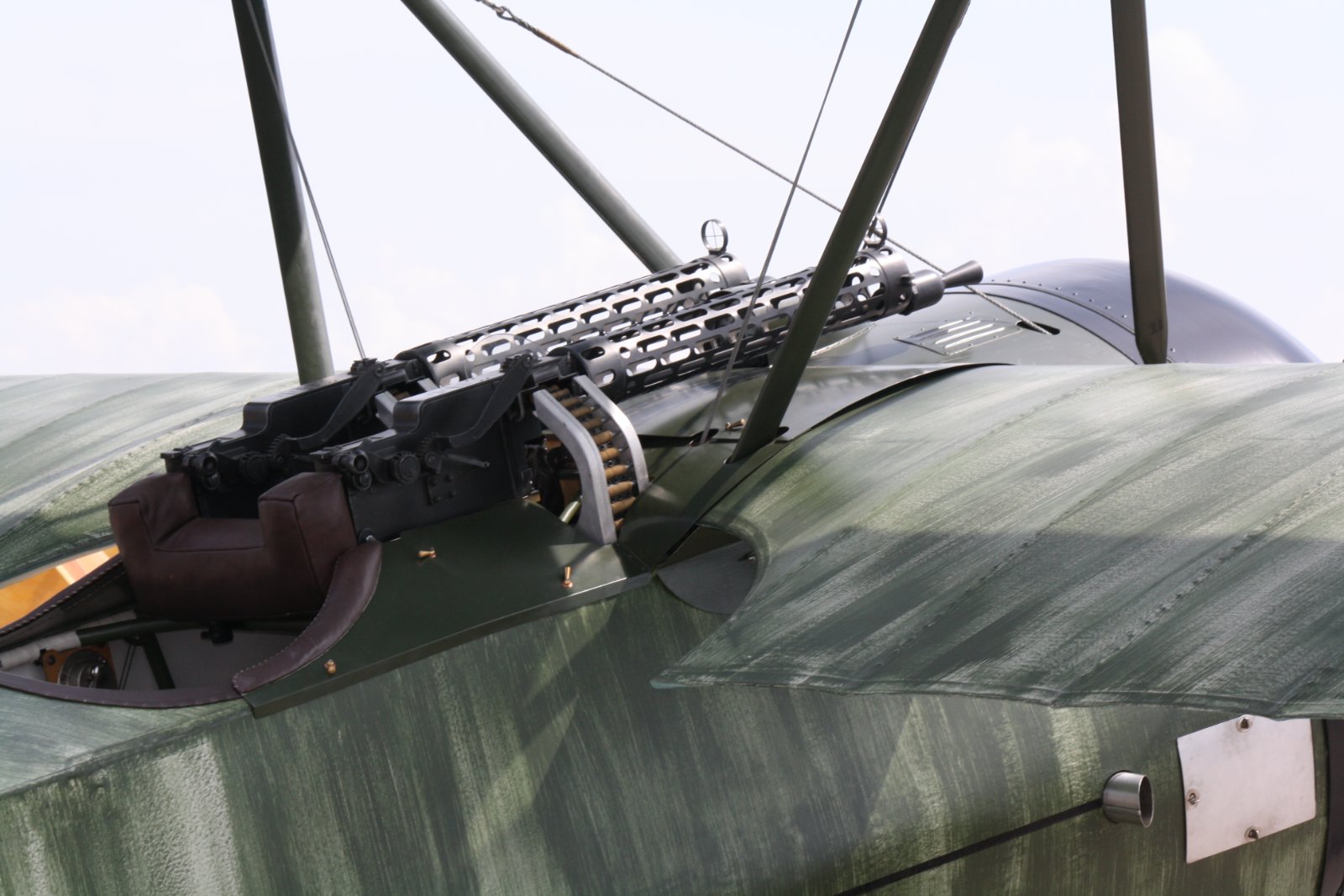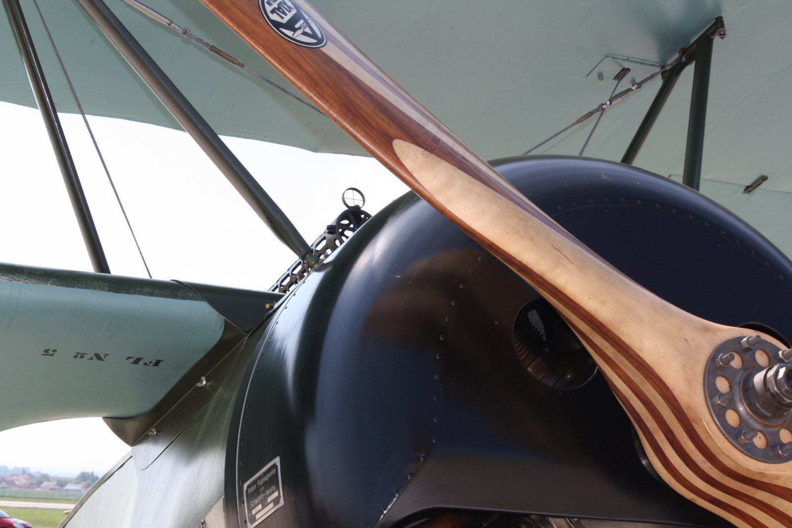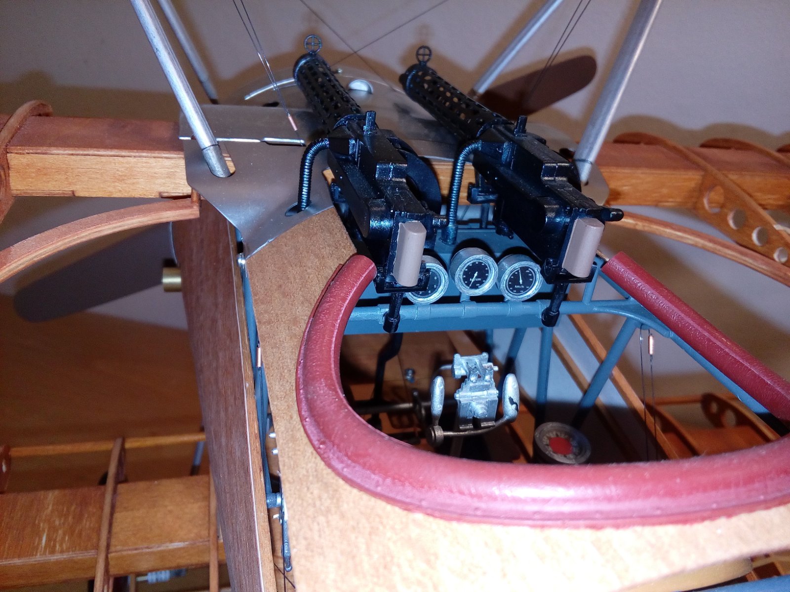 Já jsem aspoň a to dost přesnou repliku viděl před pár lety v Pardubicích na Aviatické pouti . Vidět to létat s rotačním motorem a cítit při startu ricinový olej je úplně něco jiného než repliky s pevným motorem . Posílám pár fotek detailů okolo přechodu křídlo trup . Je to s plechu . Já to mám zjednodušený , zakrývají to trochu stejně kulomety .