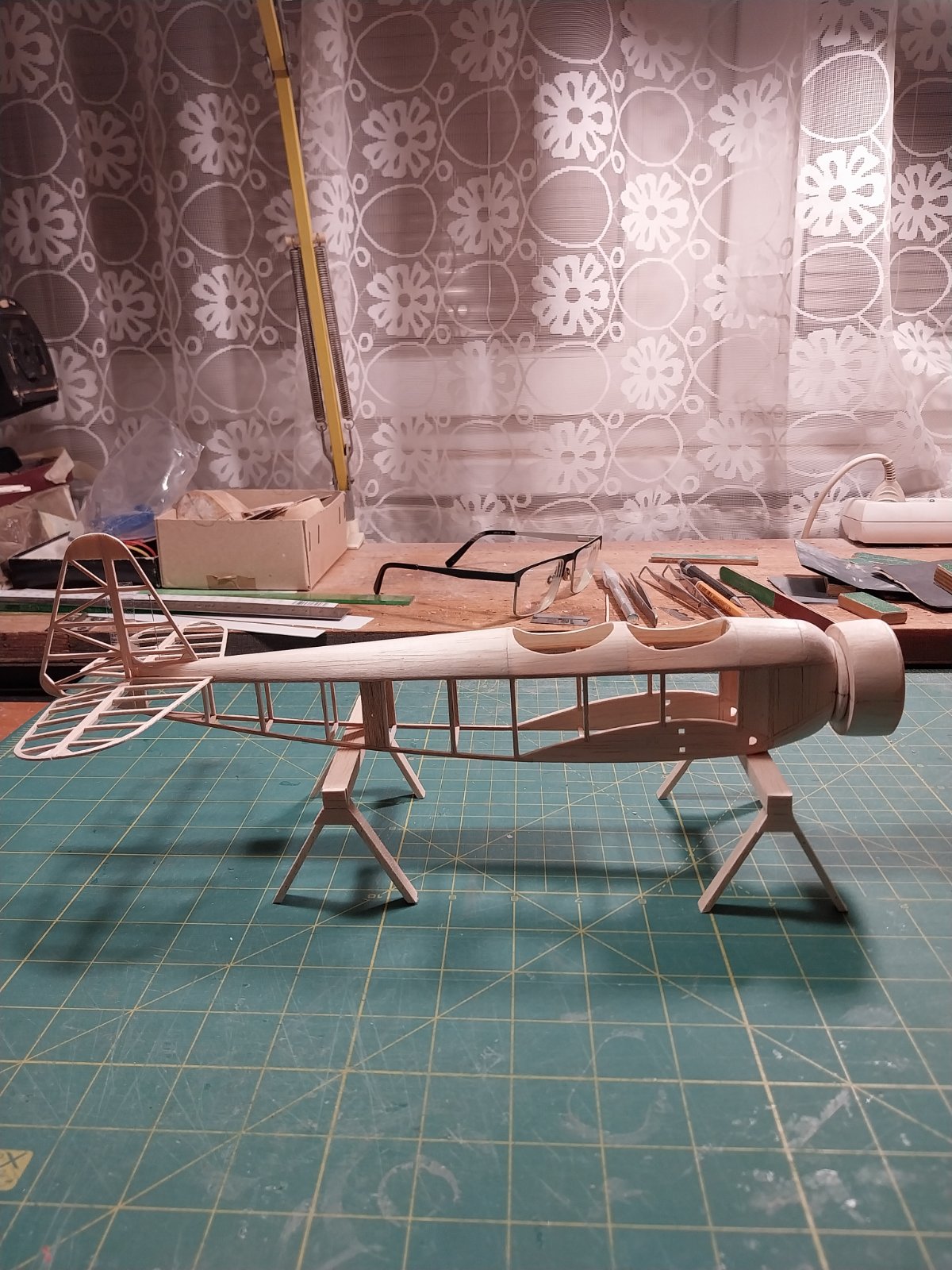 Petře, Roberte a Michale děkuji za vaše příspěvky a hlavně fotky .Začal jsem potahovat horní část trupu u obou Bet. Do potahování plaňkováním se mě moc nechtělo tak jsem to zkusil potahovat celými pláty balzy .Tvar potahu jsem vytvořil pomocí pauzáku.