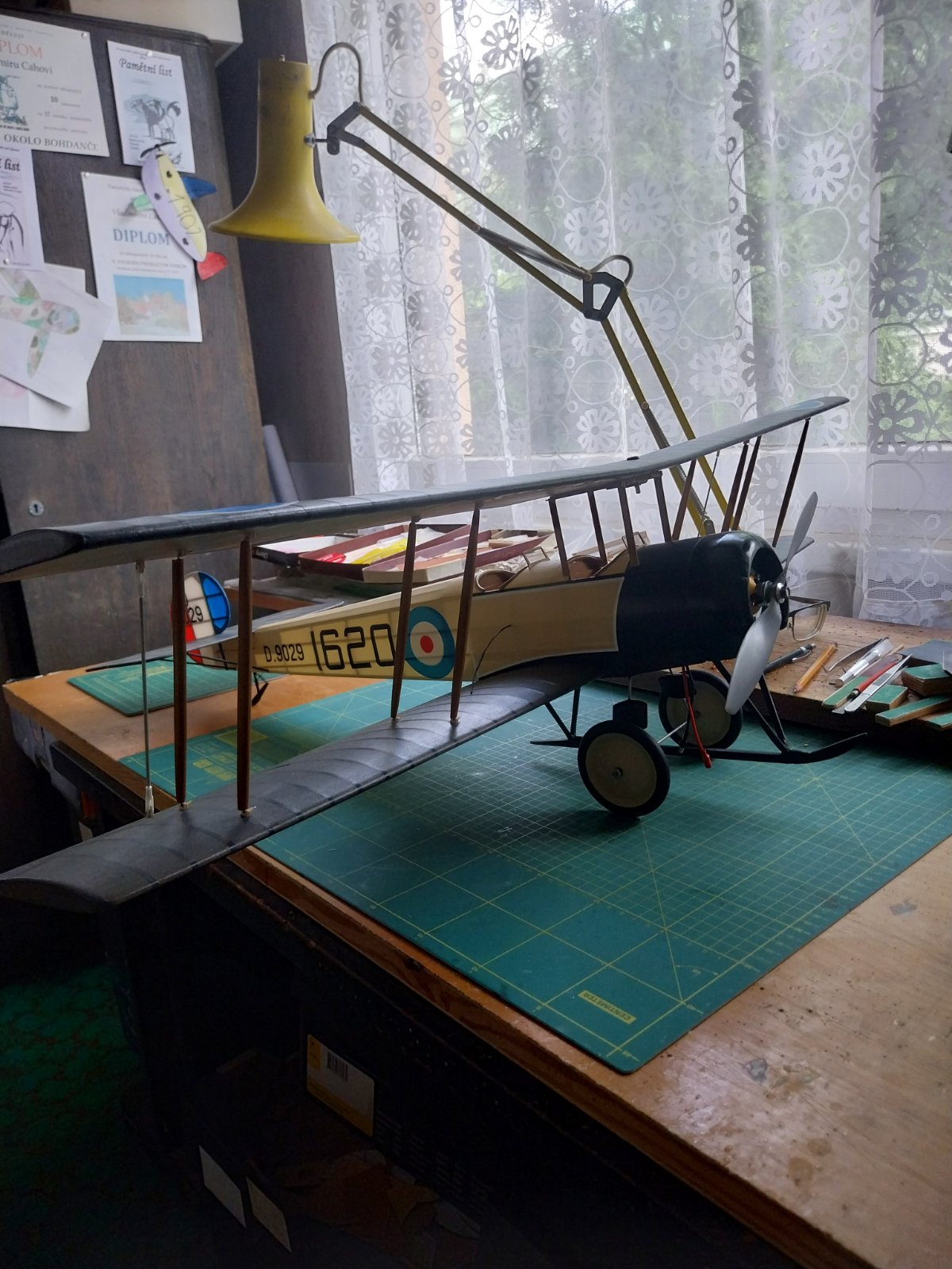 Rozpracované minimakety jsou potažené a vylakované .Ve vzduchu ještě nebyly protože zbývá dodělat nějaké detaily a hlavně zhotovit vrtulové komplety. Práci na minimaketách jsem musel přerušit z důvodu dokončovaní a připravování na zálet trochu více přerostlé minimakety vlastní konstrukce Avro 504 K na elektropohon (rozpětí 920 mm) abych si sní ještě letos zalétal na naší sekané vzletové dráze jejíž sekání si platíme. A také zbývá připravit na zálet Fokkera DrI 890 mm Tolik na vysvětlenou proč ještě minimakety nebyly ve vzduchu