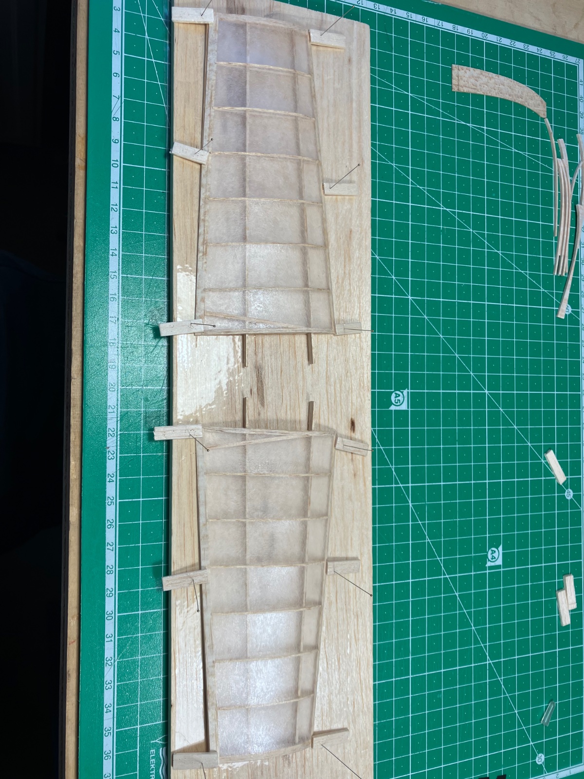 Úprava již potaženého křídla kde jsem přidal podporu pro přilepení přechodu křídlo-trup…