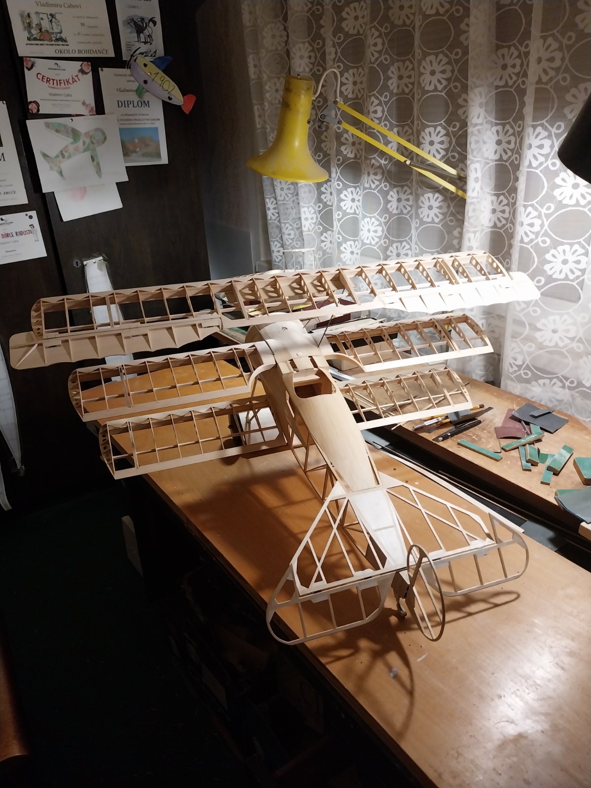 Ten můj je menší, rozpětí cca 720mm a "volňas", tedy vzepětí mít bude, resp. už má.