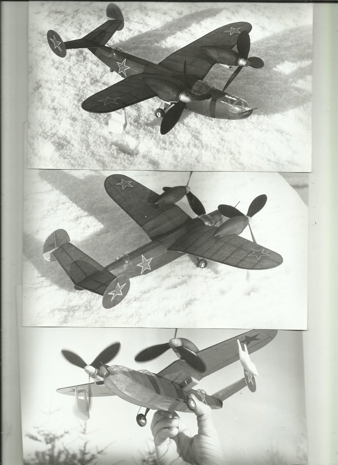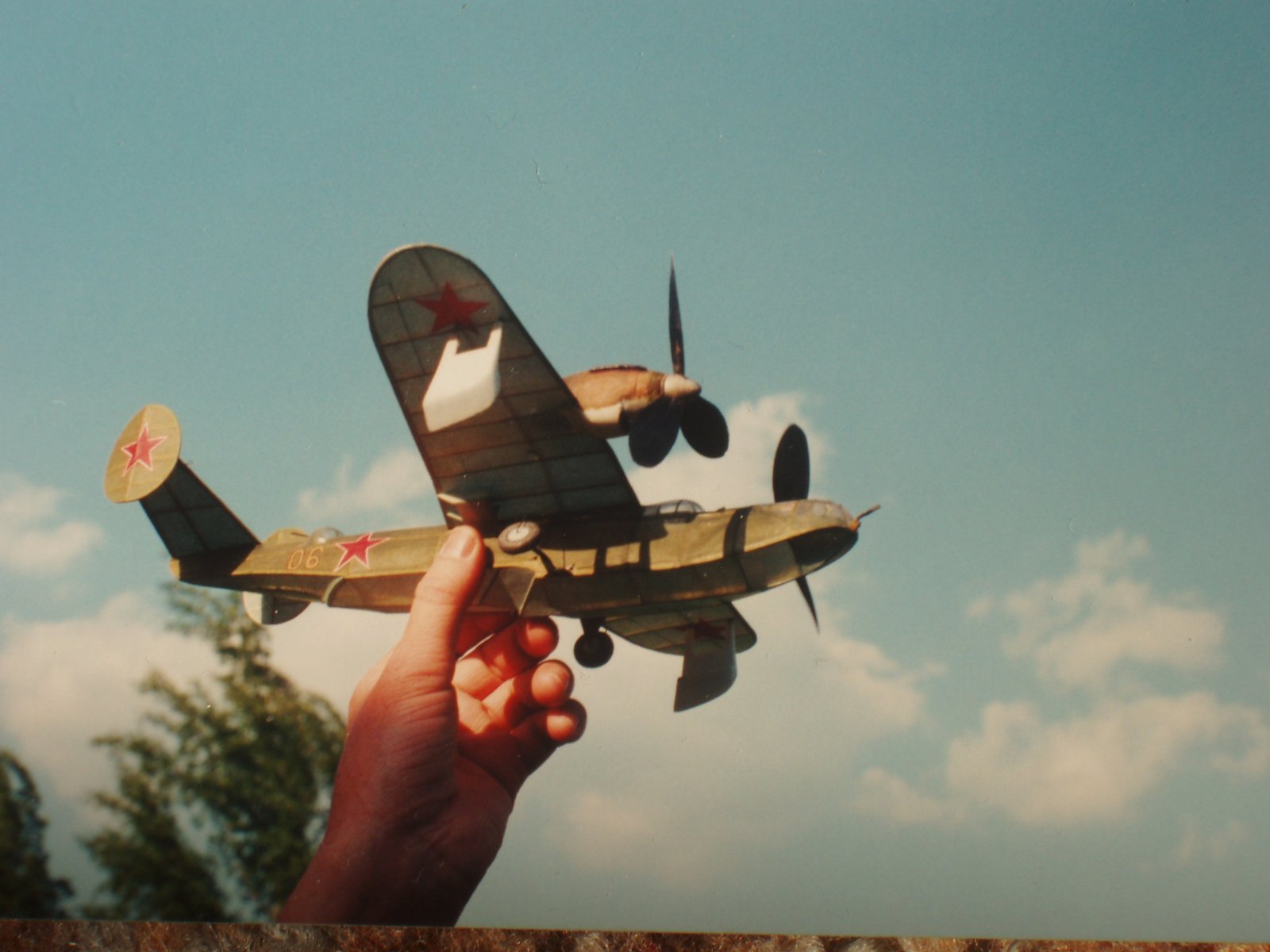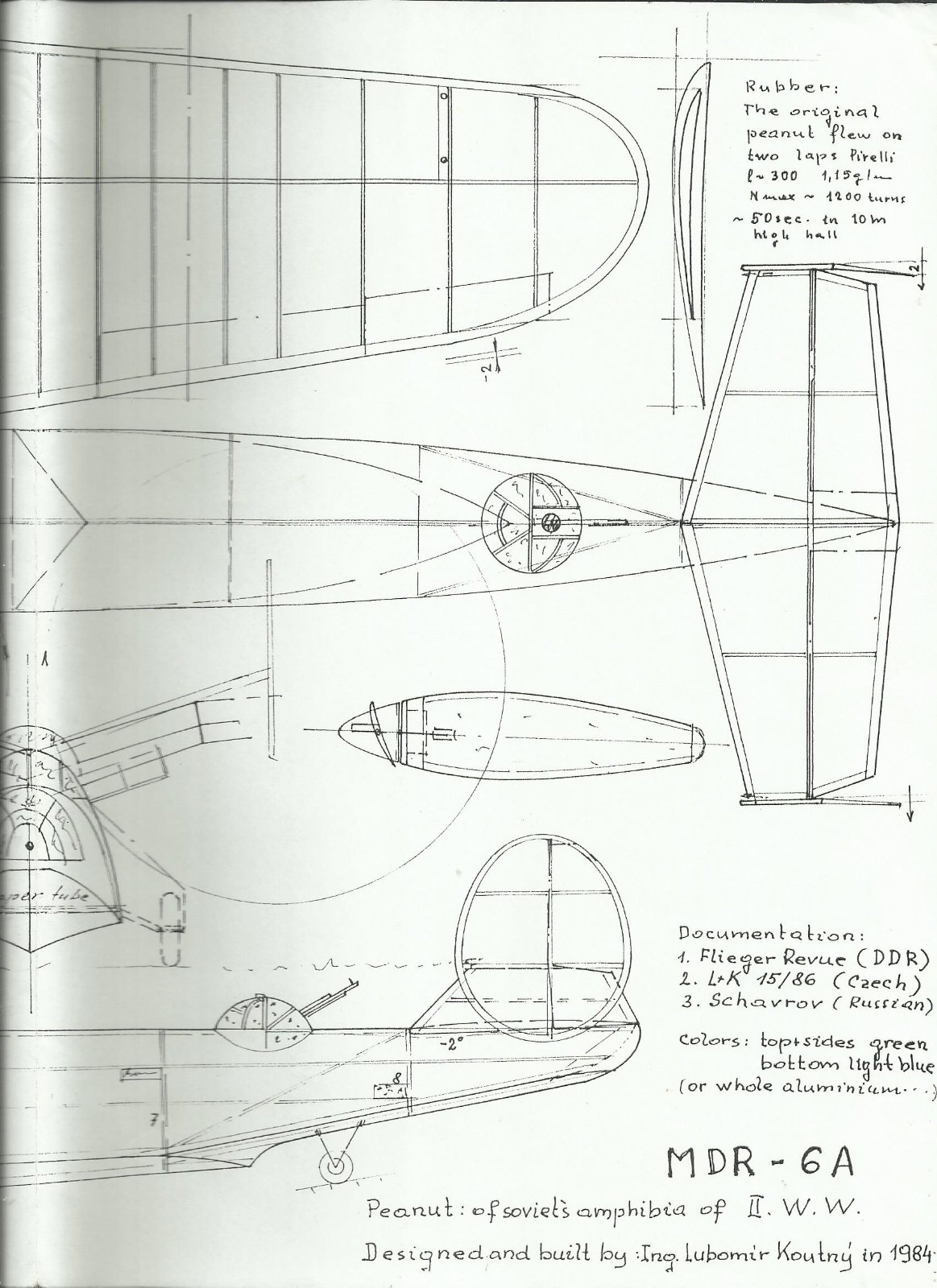 Historie této zajímavé amfibie hezky popsal v L+K V. Němeček, tam jsou i dvě fotky a 3p dvou verzí. Jedná se o mimořádně vhodný typ dvoumotoráku pro soutěže halových modelů M-oř a M-pist. Byla to velká výzva pro mne dokázat, že umím vyhrávat tyto soutěže i s modelem naprosto odlišné koncepce, než byl úspěšný superlétavý Kalinin K-5. HLavně se jednalo o nádherné soutěže v Novém Mestě nad Váhom pořádané ign. Gašparínem jako Československo-sovětský pohár. Ten pohár byl moc hezký viz foto. V nízké jen 8 m vysoké hale model létal 5O s,
