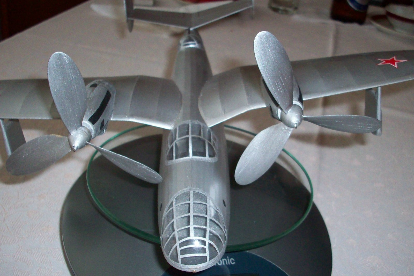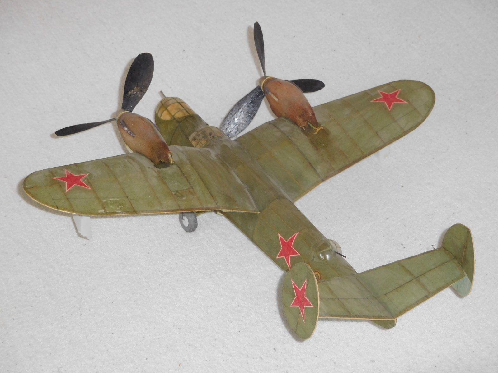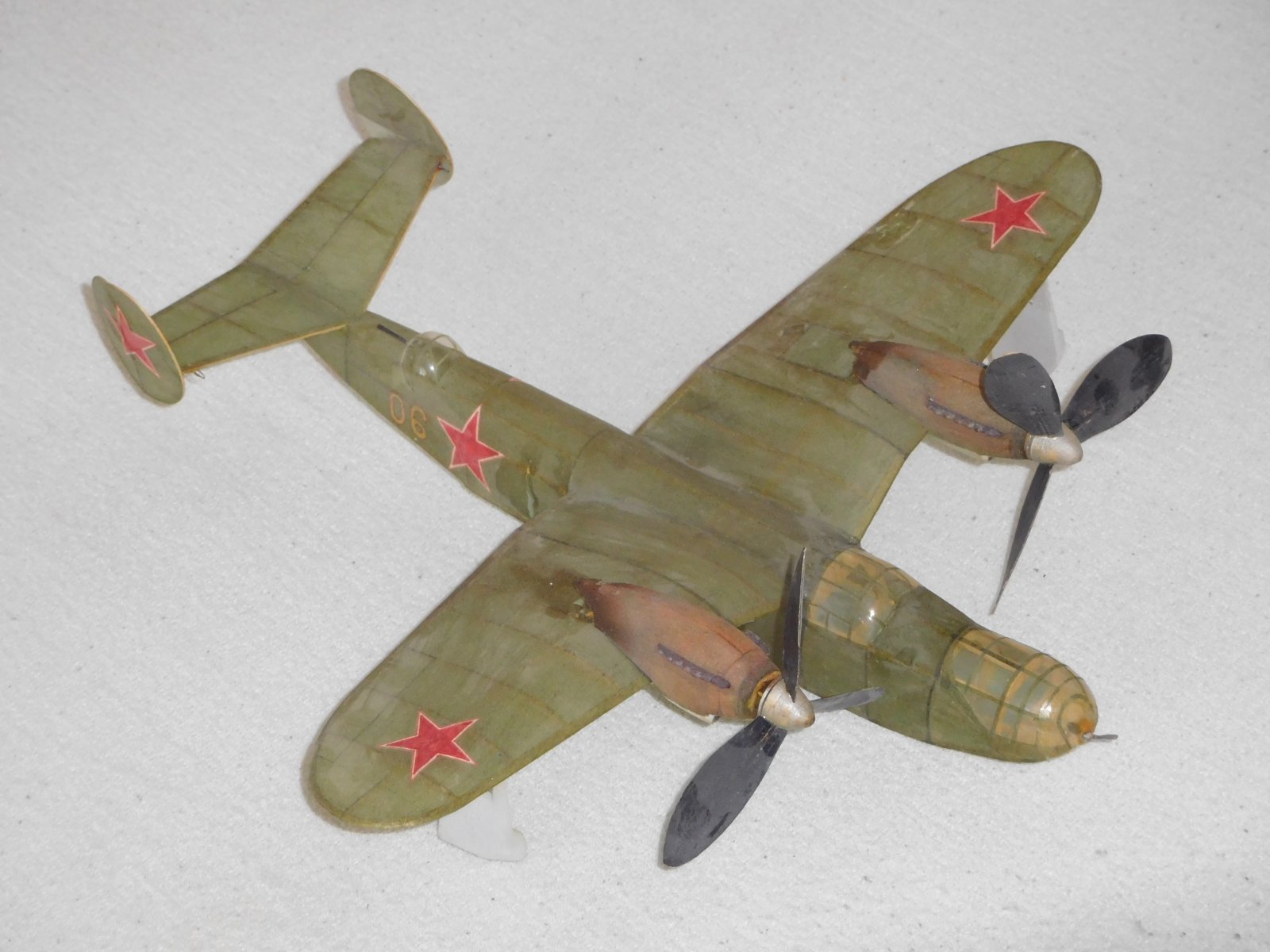 Historie této zajímavé amfibie hezky popsal v L+K V. Němeček, tam jsou i dvě fotky a 3p dvou verzí. Jedná se o mimořádně vhodný typ dvoumotoráku pro soutěže halových modelů M-oř a M-pist. Byla to velká výzva pro mne dokázat, že umím vyhrávat tyto soutěže i s modelem naprosto odlišné koncepce, než byl úspěšný superlétavý Kalinin K-5. HLavně se jednalo o nádherné soutěže v Novém Mestě nad Váhom pořádané ign. Gašparínem jako Československo-sovětský pohár. Ten pohár byl moc hezký viz foto. V nízké jen 8 m vysoké hale model létal 5O s,