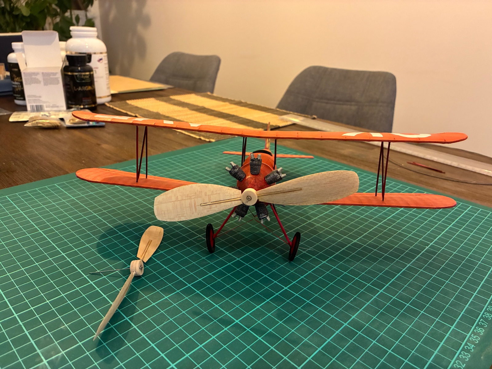 Zbývá vrtule, ostruha a větrný štítek, a to už jsem na 9g