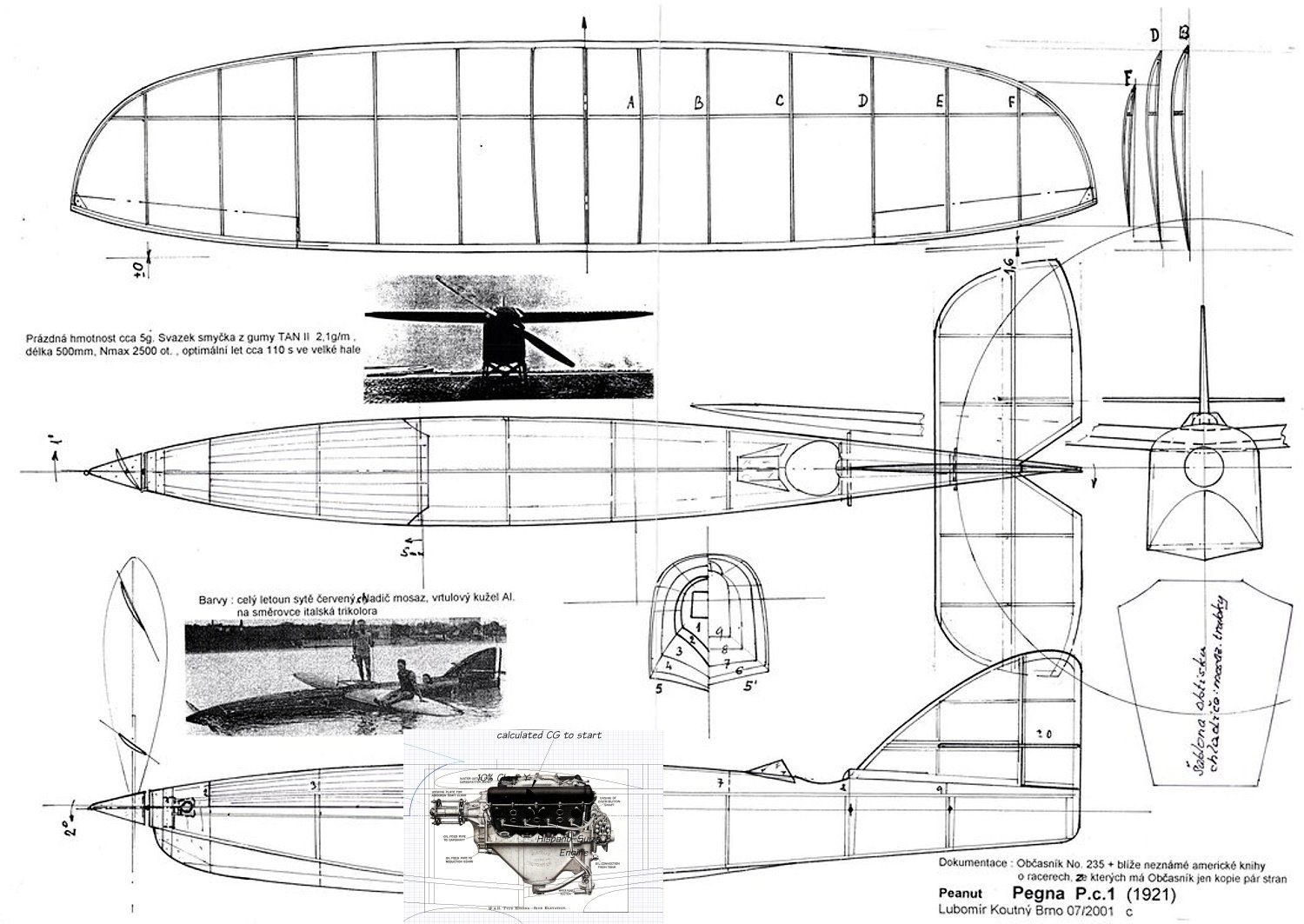 Protože se mi Pegna 1 skutečně zalíbila a chci se o ní dozvědět víc (třeba ji i časem postavit pro Lubošův pohár?), tak pátrám a pátrám. Tohle jsem našel - jakýsi staře vypadající náčrtek. Všimněte si, že to vypadá jako by Pegna 1 měla mít levotočivou vrtuli.