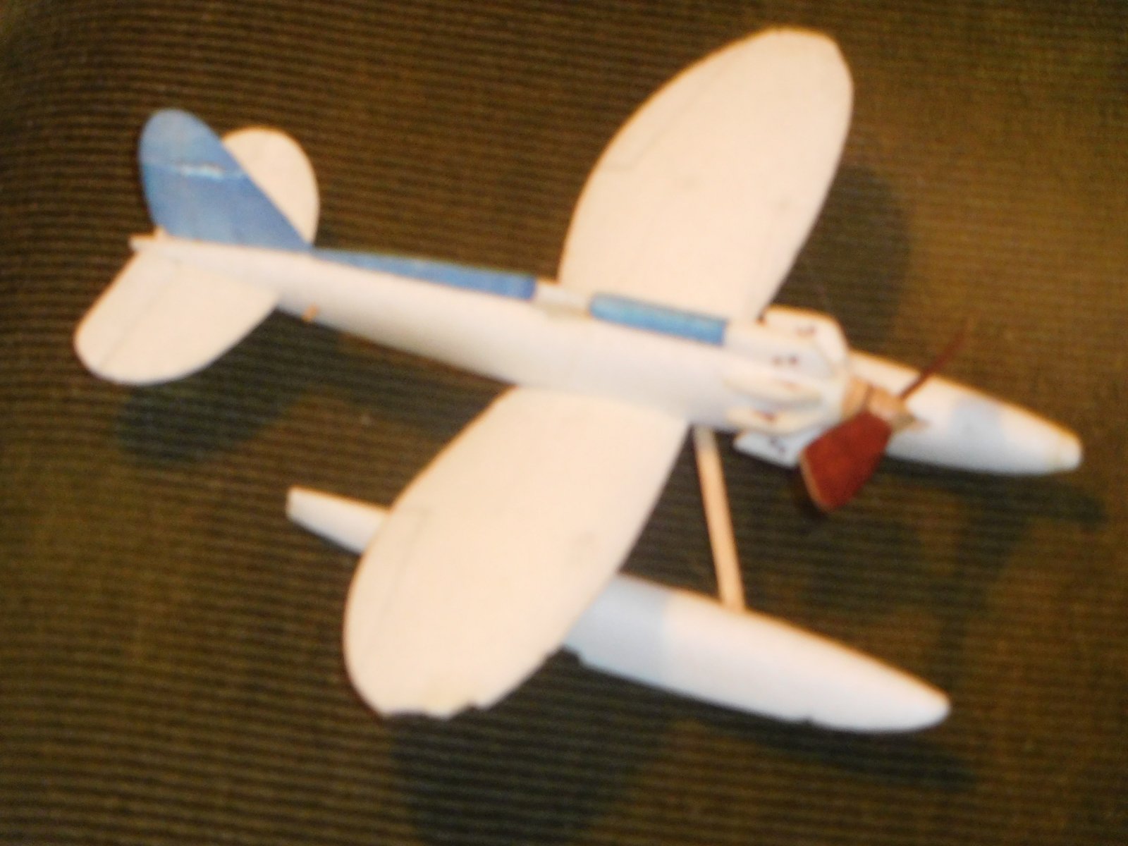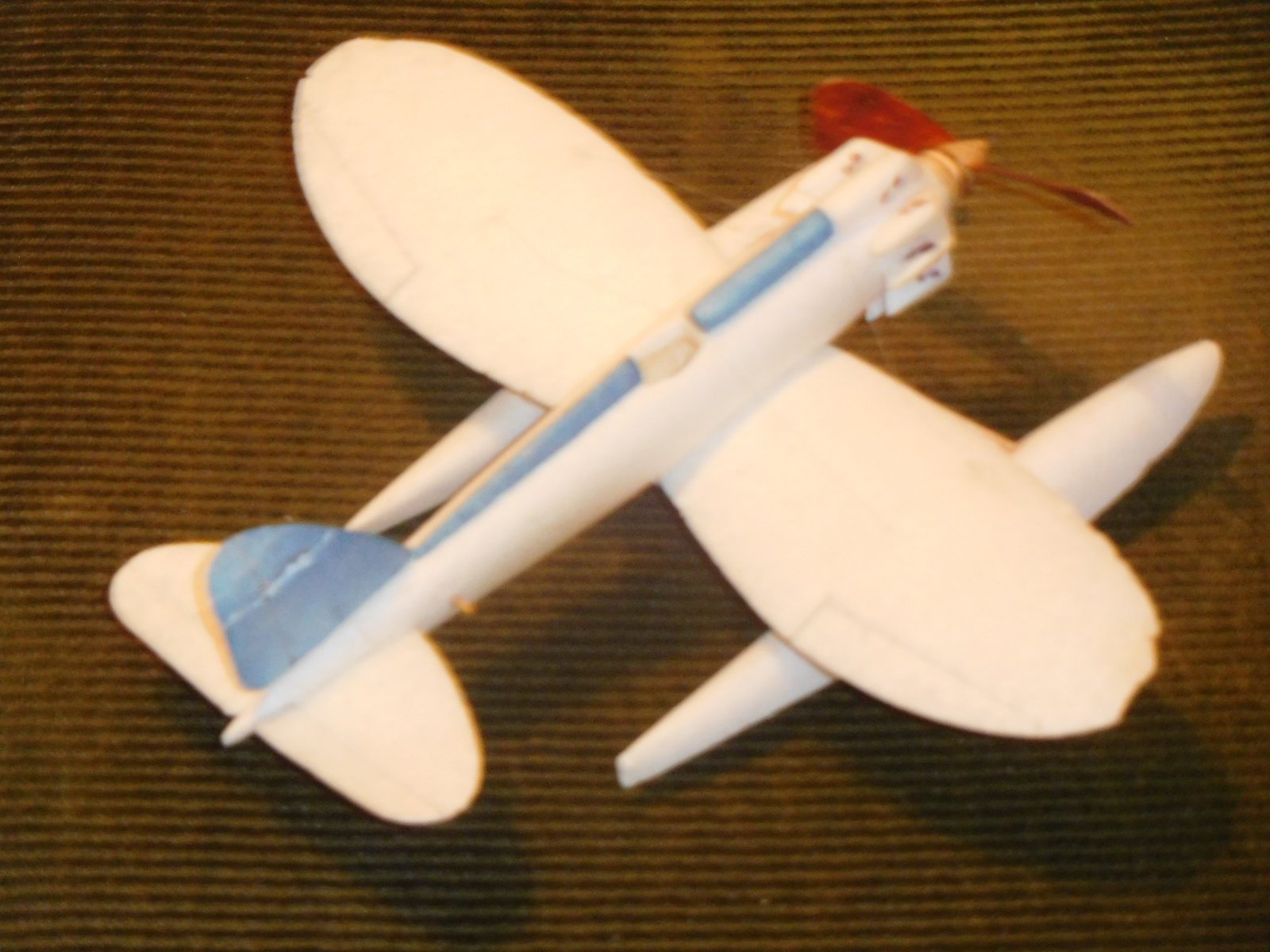 Po delší době jsem se trochu podíval do krabic se staršími modely a objevil tam několik M-pist se kterými jsem nikdy nezávodil. Mezi nimi je také jeden z mých pokusů o sochařinu s pěnového polystyrenu . Jedná se o Short Crusader, který jsem celý dělal z běžného polystyrenu - obalu pro elektroniku. Samozřejmě, že z dnešního pohledu je to materál nevhodný, málo pevný a na povrchu hodně hrubozrný. Bohužel jeho jediná výhoda - malá váha se nijak výrazně na složitém typu neprojevila. Letová váha je 5g. a snadno se poškozuje okraj křídel. Ten model má v sobě alespoň 10 let starou gumičku, nicméně natočil jsem do dní pár obrátek a zkusil let končící na posteli. Model byl moc natlačený, malý zásah do kormidel a ono to létá. Myslím, že ti hoši, co říkali, že se jim ten typ líbí, tak by jej mohli s úspěchem postavit i klasicky jako M-oř. An,o ty proporce jsou velmi vhodné a typ je hezký. Malé doporučení : profil křídla volte tenký s rovnou spodní stranou (mlenutý bude potřeovat velký úhel seřízení a hůře se bude zalétávat!