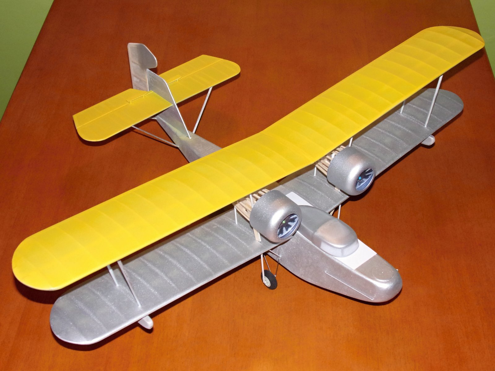 Ivane, to je paráda! Jen mi řekni, proč to nazýváš polomaketou? Myslím, že se vůbec nemusíš stydět. Ale napadá mě, že svým krásným a zajímavým modelům takto říkáš, abys je nemusel přihlašovat na soutěže, i ty jeden 😉 Schválně jsem se koukal, kdy si zakládal vlákno. Přesně před měsícem od dokončení. Na dvoumotorák a dvouplošník fakt slušný! Přeji ti, ať tvůj model létá tak hezky, jak jen vypadá, klobouk dolů.