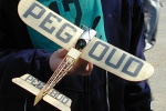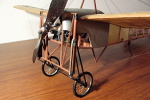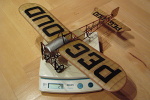 Miniscale Blériot XI Monopol, in aerobatics version and marking by Adolph Pégoud, was built in 1998 as free indoor scale model of F4E category driven by electric motor with Kenway gearbox. Drive did not have sufficient power so the model was rebuilt to CO2 Gašparín G24 drive, but even that one was not sufficient. So Blériot went to the display case and later to the woodden case in the basement. When in 2003 subminiature RC equipment become available together with the sufficient drive I put it into the model. I was not very convinced, so the instalation was just quick and temporary, but to my surprise the model flew well, was stable and responded nicely to controls. So it earned scale details and scale control surfaces drive by wires.