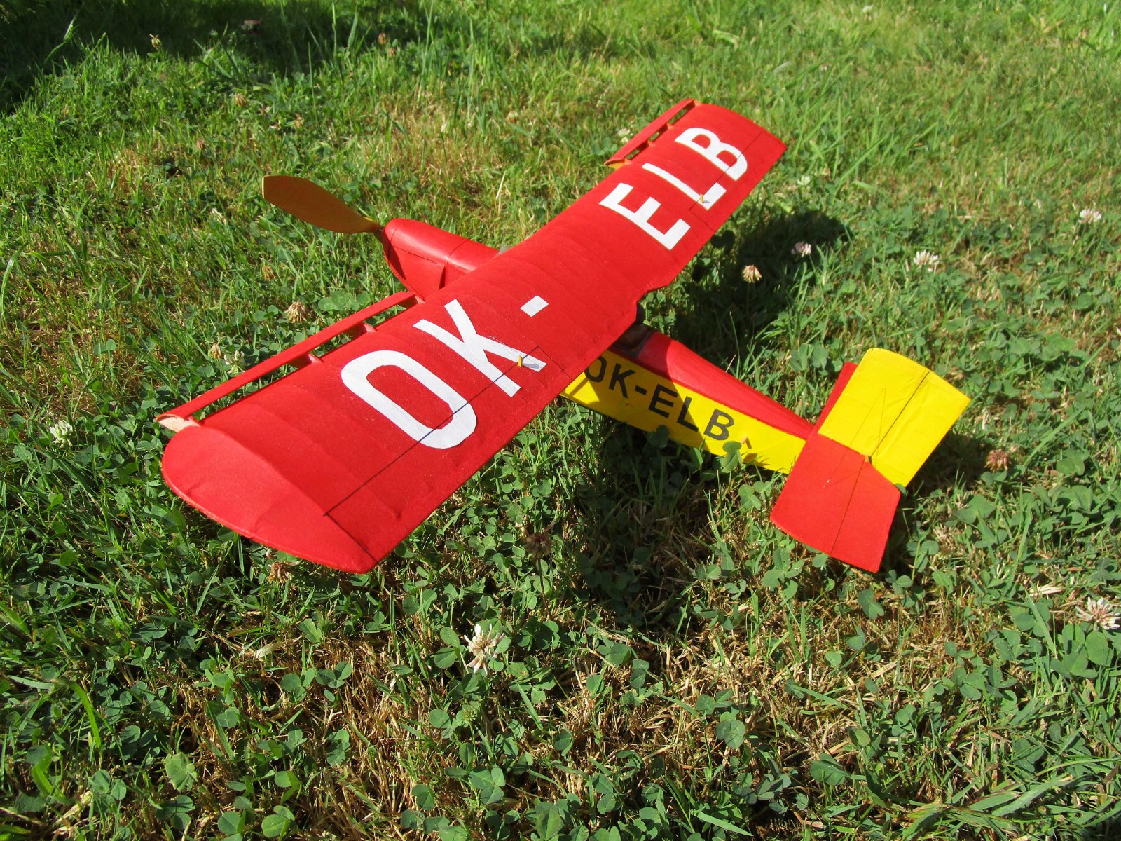 Ještě k barvám. Model je potažen červeným a žlutým modelspanem, takže mohl létat i tak. Přes to jsem lehce stříkl barvy Styro ve spreji, koupené u Pecky. Na již barevný podklad jich moc nepadlo.