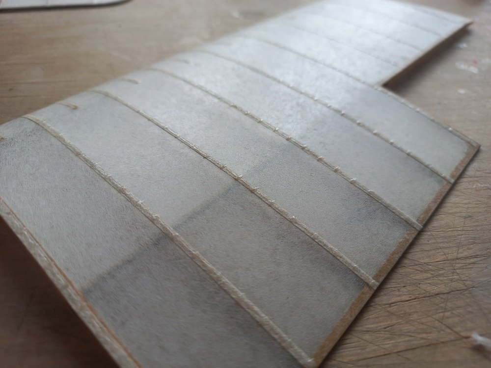 Jednalo se o síť tenkých vláken nalepených na potahový papír a z toho pak nařezané proužky. Aspoň tak jsem to pochopil já, přišlo mi to podobné jako když na velkých RC maketách to řežou z pásků perlinky a ty pak přelepí portem. Mně to ale moc nešlo, třeba jsem jen nešikovný.