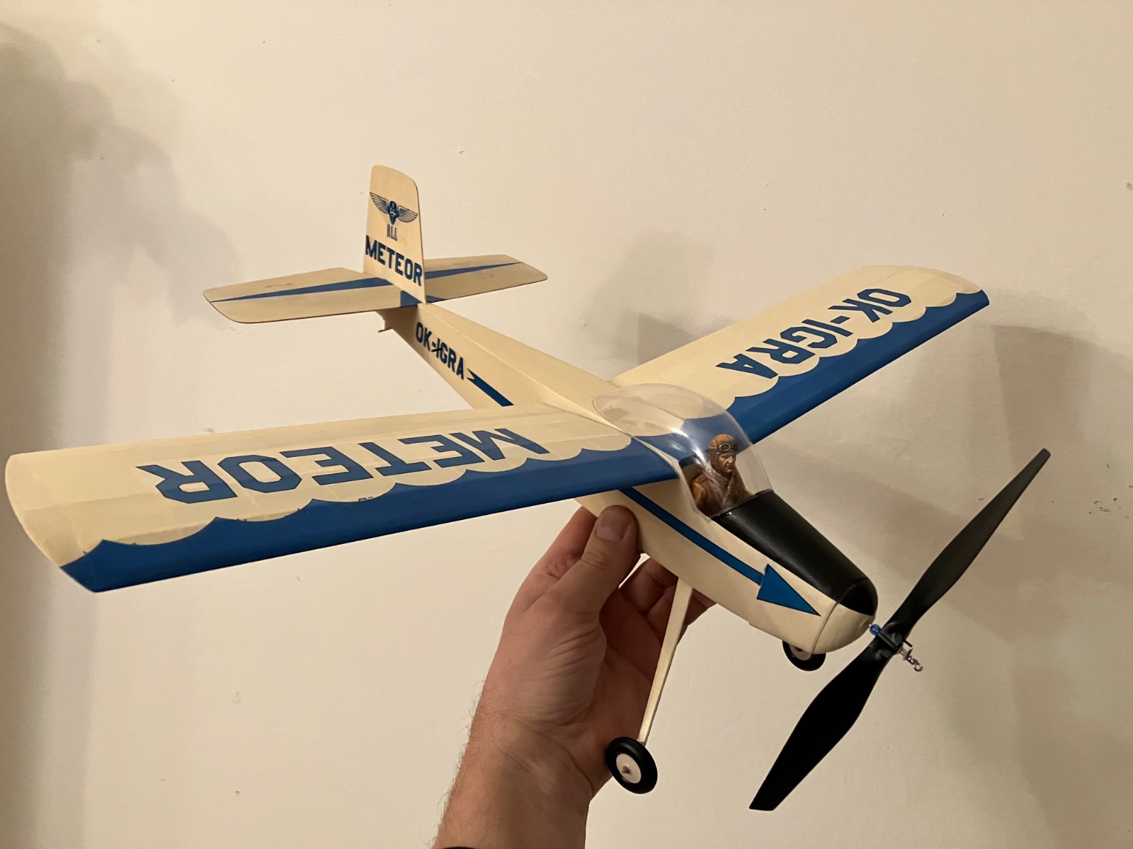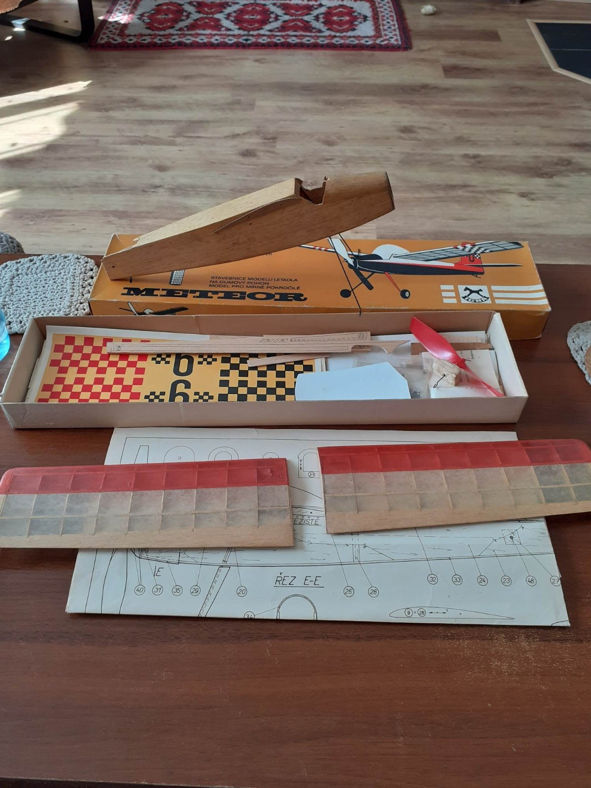 Zdravím , musím se usmát, jak si život dělá srandu. Zrovna v září jsme do kroužku dostali dědictví. A zrovna originál nerozbalená stavebnice Meteora . Rok výroby 1975 se vším všudy s kabinou, kolečky a vrtulí .PS - není to 150 igra . Dokonce i lepidlo na potah v prášku. Naskenovali jsme s kolegou plán i potištěnou balsu . Kdyby měl někdo zájem skeny zašlu. Jirka