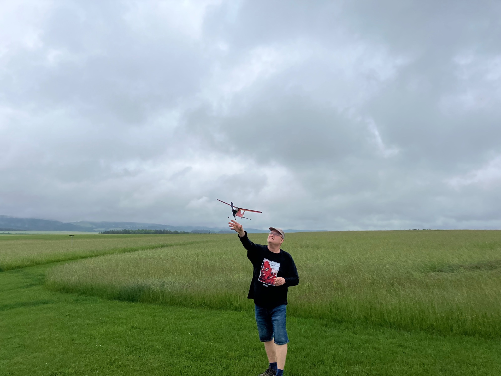 Nejdřív bych chtěl poděkovat všem, co k nám přijeli i přes nepříznivou předpověď počasí. Objevilo se i pár nových tváří (tedy u nás, jinak již modelaří už dlouho). Sešlo se nás deset, dokonce bylo několik "oken" bez deště, kdy jsme mohli létat, čehož všichni využili. Některé starty Michala Křepelky Byla radost sledovat i několik minut. Zaslouženou pozornost budily i RC verze, zvláště RC Marabu, který proti větru dokázal ve vzduchu i stát na místě Modelů bylo vystaveno přes třicet, od klasických gumásků přes RC verze až k vystřelovacím modelům. Bohužel nepřijeli dva známí fotografové, takže atmosféru vystihl na fotkách Jirka Pavlíček. Nejvytíženějším modelářem byl Filip Bílek, který díky hlinkám mohl chodit do neposekané trávy. Meteory díky menší účasti představili čtyři modeláři. Podle úsudku členů našeho klubu byli tři oceněni. Atmosféra byla vynikající, při odjezdu jsem neviděl jediný rozladěný obličej. Všichni zúčastnění přislíbili účast i příště. Jako společný byl vybrán - jak jinak - model z produkce IGRA Plameňák, zmenšený na 50 centimetrů. Jako ukázku jej v růžové barvě představil Michal Křepelka.